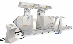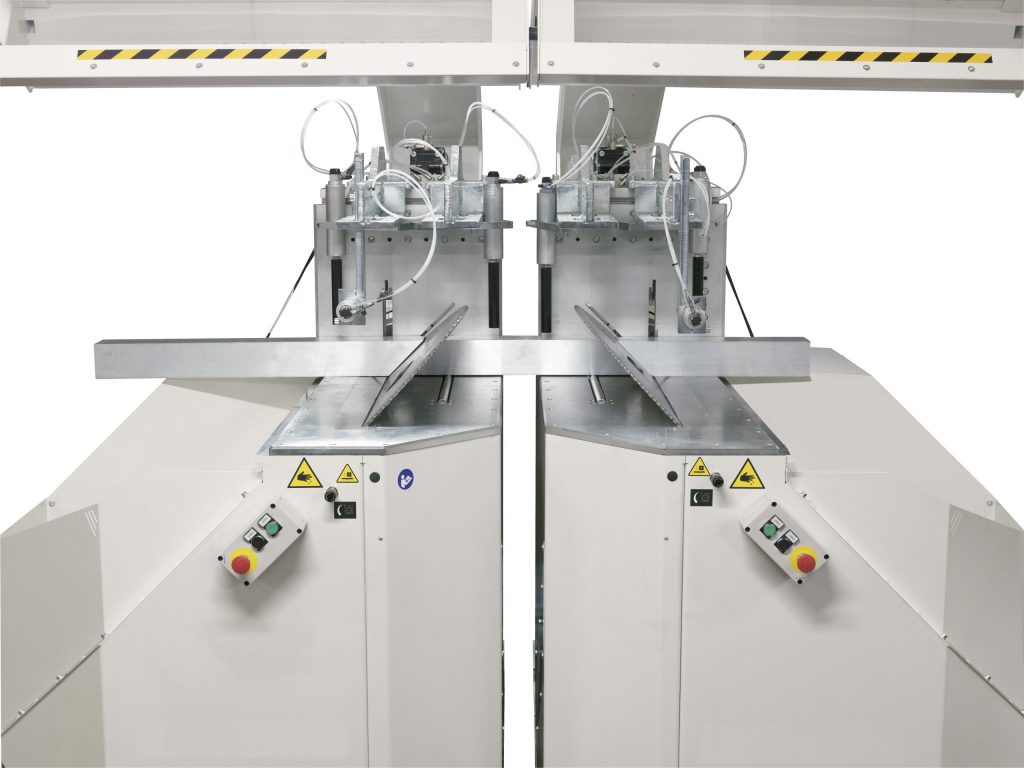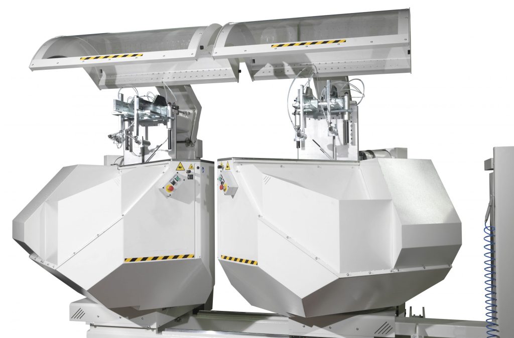 1.050 mm bileşik kesimler için eğilebilen ve dönebilen yükselen bıçaklara sahip çift başlı kesim makinesi.