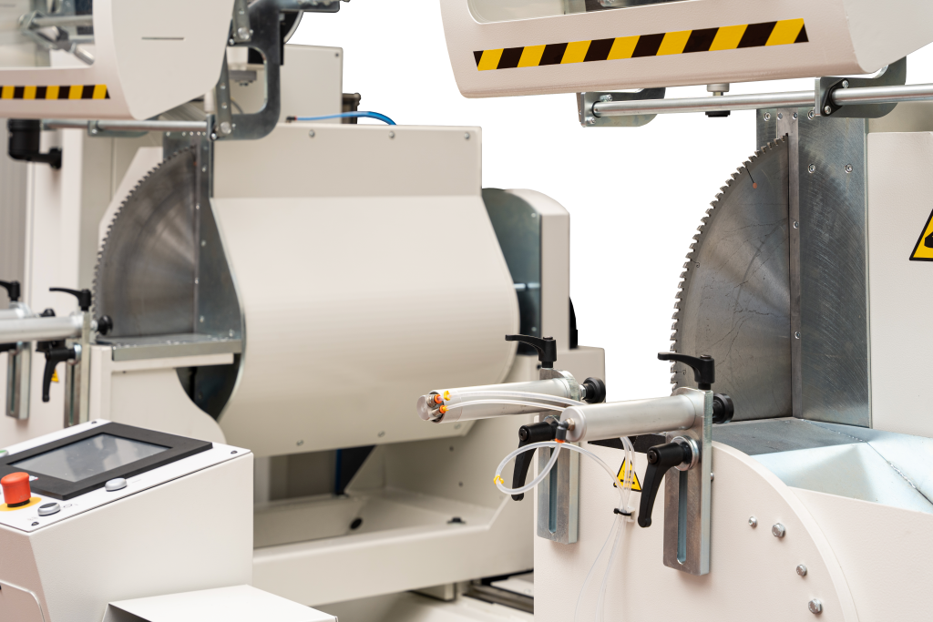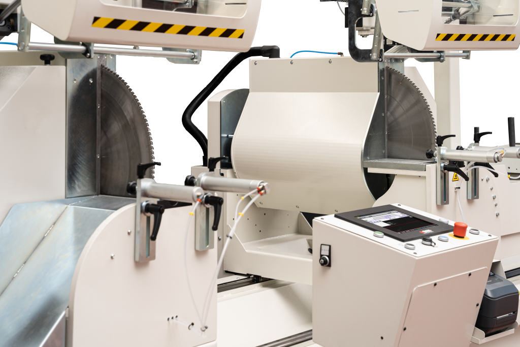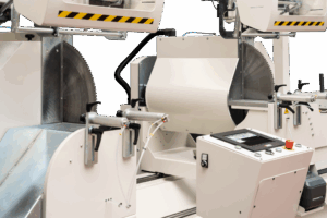 600 mm ön bıçaklı çift kafalı kesme makinesi. Elektro kaynaklı çelik taban.